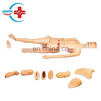 HC-S103 Advanced full-featured nursing training simulator/care model/mannequin/nursing manikin (male)Product DescriptionTechnic parameters Features:Cleaning and combing hair, washing your faceEye and ear cleaningOral care, denture careOropharyngeal intubationTracheotomySucking methodOxygen inhalationOral feeding methodStomach washingThoracic drainageAbdominal drainageArm vein puncture, injection, infusion (blood)Subcutaneous injection of deltoid muscleLateral femoral muscle injectionThoracic cavity, abdominal cavity, liver cavity, bone marrow, lumbar punctureEnema methodFemale catheterizationMale catheterizationFemale bladder irrigationMale bladder irrigationOstomy drainageColostomyHip intramuscular injectionHolistic care: scrubbing, dressing, hot and cold therapyThe limbs are bent, rotated, and moved up and downWound assessment and care: disinfection, cleaning, dressing change, hemostasis, dressingChest wall incision and suture wound careAbdominal wall incision and suture wound careThigh trauma incision and suture wound careThigh skin laceration careThigh infectious ulcer careFoot gangrene, 1, 2, 3 toe and heel pressure sore careUpper arm amputation wound care Calf amputation wound care Pictures for HC-S103 Advanced full-featured nursing training simulator/care model/mannequin/nursing manikin (male) Packaging & Shipping Company Information contact Our Services FAQ1. How to place order of HC-S103 Advanced full-featured nursing training simulator/care model/mannequin/nursing manikin (male)A: Firstly we confirm product details and then send the Proforma Invoice, You make payment to us through Alibaba Trade Assurance or T/T, Western Union or MoneyGram, after we confirm your payment then ship the product to you once finished production. 2 HC-S103 Advanced full-featured nursing training simulator/care model/mannequin/nursing manikin (male) product,What’s the minimum order quantity (MOQ)?A: For disposable material,We have our own MOQ,For our HC-S103 Advanced full-featured nursing training simulator/care model/mannequin/nursing manikin (male) our MOQ:1pc,3. What is your warranty?A: For most products the warranty is for 12 months, some products we provide 18 months warranty. For HC-S103 Advanced full-featured nursing training simulator/care model/mannequin/nursing manikin (male)4. What’s your delivery time?A: Generally it is 5 working days if goods in stock. within 10 working days if the goods need production, And also the delivery time depands on quantity. For HC-S103 Advanced full-featured nursing training simulator/care model/mannequin/nursing manikin (male)5. How to ship the product?A: The shipping way normally depand on your quantity,total CBM and weight. We have our own shipping company to provide best shipping cost and efficient way.
