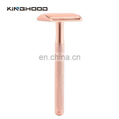 New Modern Rose Gold Metal Ladies Bikini Hair Double Edge Blades Portable Razor