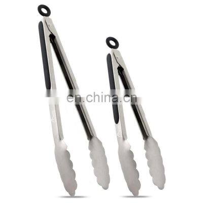 Stainless Steel Kitchen Tongs Set of 2 - 9" and 12", Locking Metal Food Tongs Non-Slip Grip Amazon hotsale