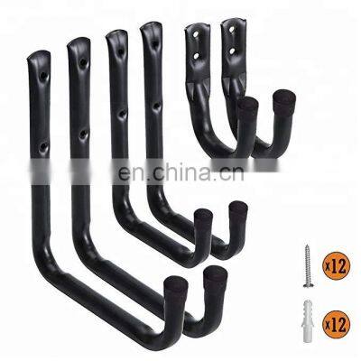 PREMIUM HEAVY DUTY MATERIAL:Small J Hooks are made of heavy duty iron and its anti-slip coating is made of sturdy PVC. Strong enough to hold 45lbs or more when properly installed. VARIOUS FUNCTIONS : Small J-Hook is a flexible wall mounting solution for hoses, bikes, cables, ladders, spade, broom, wrench, garden tools, power tools, electrical cords,gym bars, Body Training and core strength builders and other items.hooks-your best helper to organize your space,such as your garage, basement, shed, shop, kitchen, bathroom. PERFECT FOR HEAVY OBJECTS: Good designed length plate design distributes weight evenly for excellent loading capacity. Tang on black plate allows for quick positioning and easier mounting. No sudden aluminum crack failure and anti-slip
