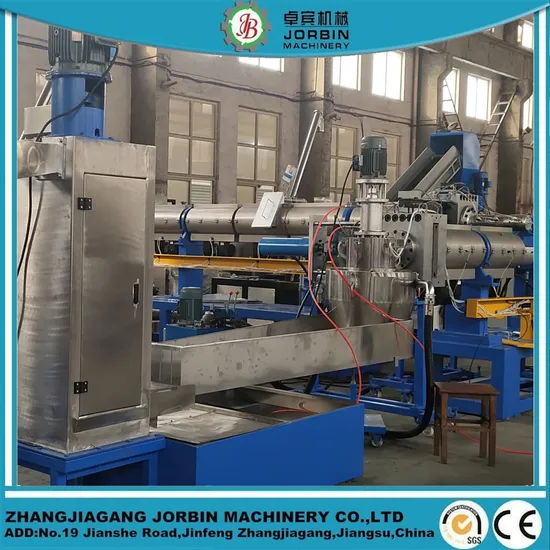 Plastic PE recycling machinery line, pelletizing machine granulating machine,Water-ring hot die LDPE film granulation machine HDPE film pelletizing machinery with vertical water-ring hot die face pelletizing way. It also can do with horizontal water-ring hot die face pelletizing way and wind cooling die face pelletizing way to meet the requirement of different material.