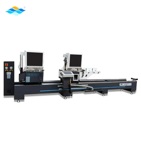 Applicable material: aluminum,thermal break profile and curtain wall profile. Hydro-pneumatic saw feed Saw heads can be pneumatically tilted at outward 45 and 90 degrees. The one-piece cast and machined tilting shaft has no deformation after long-term use to ensure angular positioning accuracy. Equipped with high precision spindle motor Servo-controlled right head positioning and feeding to ensure accuracy. Automatic profile height measurement. The CNC operating system provides four processing modes: Single, Form, Short, Corner cleat Comes standard with three pneumatic lift stands for supporting the profile. 10 inch LCD touch screen color monitor.