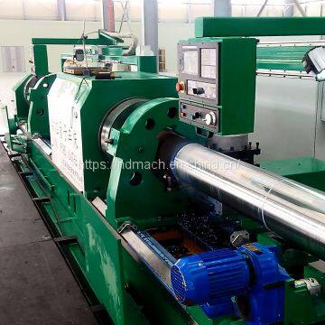 HYSK-1332Z CNC lathe is the special machine for turning cylindrical for drill collar, oil drilling rigs and mandrel etc. Use three guide rail, main headstock, auxiliary headstock, support guide rollers are on the same pair guide rails, dual big carriages are on the other pair guide rails. Four 4-jaw chuck clamp workpiece, Z direction use gear and rack transmission, driven by servo motor, X direction use ball screw, driven by servo motor. Dual way cutting, compared with traditional universal lathe, the machining quality and efficiency are promoted.