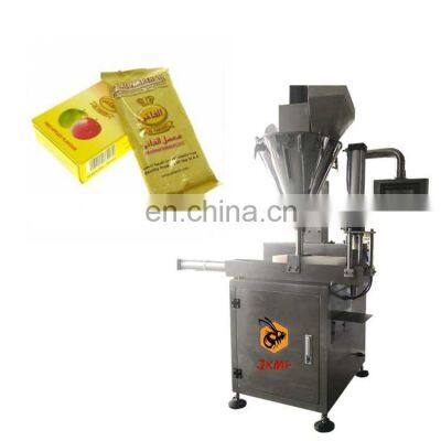 Small Vertical Hookah Tobacco Filling Packing Machine for Hookah Shisha Packing MachineProducts DescriptionApplication>What can this machine pack?Specialized in providing shisha tobacco packaging solutions, from filling, sealing, packaging, and full box packaging.Machine InformationPacking range50g~1000gPacking SpeedMax.30 bags/minBag SizeL:80~300 mm,W:60~200 mmMachine Sizeļ¼L*W*H)1185*935*1920mmMachine Weight 450KGMachine Power220V,50/60HZ,2.4kwMain Features1.Efficient: Bag-making, filling, sealing, cutting, heating, date / lot number achieved in one time; 2.Intelligent: Packing speed and bag length can be set through the screen without part changes; 3.Profession: Independent temperature controller with heat balance enables different packing materials; Dual inverters controller, upgradable PLC system, self-failure diagnosis, double encoder. 4.Characteristic: Automatic stop function, with safe operation and saving the film; 5.Convenient: Low loss, labor saving, easy for operation and maintenance.6.Adapability: one set of machine can be applicated to different kind of product via optional devices, such as air-filling device, feeding line, etc.Machine Working Process1st step: Setting the parameters you want by touch screen.2nd step: Put the material into the stainless steel hopper.3rd step: The measurement parts will measure the weight of each one automatically.4th step: The forming extrusion device will form the measured material.5th step: The bag making device will automatic sealing and cutting the bag.6th step: At the end you can get a beautiful package finished product.Why Choose UsJIKE BEE MACHINERY has a professional team to provide customers with various packaging solutions. Fully understanding the needs of customers,engineers design the most suitable solution. We have our own processing and assembly workshop and quality inspection and debugging process to ensure the quality of the machine. After acceptance by the customer, they are packed in international standard wooden cases and shipped.Company ProfileFoshan Jike Bee Automation Equipment Co., Ltd. is a manufacturer of automatic packaging equipment.We are a production-oriented enterprises focused on product innovation, factory direct sales and perfect after-sales service in one.The automatic packaging equipment for granule, powder, liquid and sauce produced by the Jason company is at the advanced level of the industry,it can be customized production automatic material packaging line for all kinds of products .Mainly applicable to: food, hardware, drugs, daily chemicals, pesticides, fruits and vegetables, cosmetics, other industries.The company has its own patent and product technical certification, which can bring customers high quality equipment and worthy of customer trust.Customer PhotosOur customers have covered more than 80 countries around the world.And give us unanimous praise.CertificationsFAQQ1:Do you have manual or operation video for us to know more about the machine? Yes, not only manual or operation video, 3D drawing also available to make as per your design,also the video we can make of testing the material from our packaging machine if your packing goods easier for us to find from our local market. Q2:How can I trust you for the first time business ?Please note our above business license and certificate. And if you don't trust us, then we can use Alibaba trade assurance service, guarantee your money, and guarantee your machine's on-time delivery and machine quality.Q3:Is engineer available to serve oversea?Yes, but the travel fee is paid by you. So actually to save your cost, we will send you a video of full details machine installation and assist you till the end.Q4:How can we make sure about the machine quality after we put the order?Before delivery, we will send you the pictures and videos for you to check the quality, and also you can arrange for quality checking by yourself or by your contacts in China.Q5:Will you provides the door to door service?Yes. Please offer us your final destination, we will check with our agent to see if it available, and most of the area is ok for us to clearing and sending in your countries.