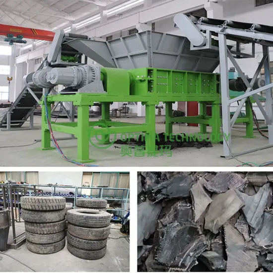 1. Tire shredder: shred the whole tires to 50*50cm/ 60*60cm/ 70*70cm tyre chips. These tyre chips are widely used as derived fuel in cement plant, power plant, paper mill or as shock absorbing material in train truck.