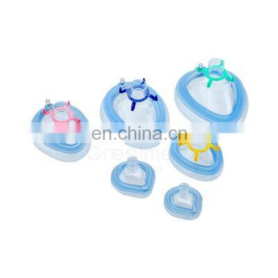 CE ISO approved silicone anesthesia face mask air cushion pediatric adult medical pvc breathing disposable anesthesia maskProduct DescriptionSpecification:Made from non-toxic PVC100% Latex-freeComplying with biocompatibility standards, Soft air cushion ensures flexibility, air tightness and low odorThe mask is specially designed to fit comfortable on a patients'face This device can be used in connection with medical equipment such as anaesthetic apparatus, ventilators, oxygen machines, hyperbaric oxygen stores, inhaled painless delivery instruments, and emergency breathing apparatus.Packed in a individual PE bagSize: 1#, 2#, 3#, 4#, 5#, 6#Related ProductsCompany InformationOUR ADVANTAGESExperience· More than 15 years experience in medical instruments industry· Products sell to more than one hundred countries all over the world· An esteemed & reliable manufacturer in chinaServices· One-stop shopping of medical instruments products· Less than 45 days delivery· 24 hours online service· We can provide our technical documents for your product registrationProfessionalism· Having a great understanding of market trends· Systematic product knowledge training system· Leading development oriented manufacturer· Help customers build factorySafety· All products certified by CE/ISO13485· Professional QC team Certifications Trade Shows Packaging & Shipping FAQ1.Can I get some samples?We are honored to send you our samples,but the express fee need to paid by your esteemed company2.How about the delivery time?1).For Samply order will be prepared within 5 days.2).For bulk order.normally,it needs 20-30 days,it's based on you QTY.3.Can you do custom-made?OEM,ODM welcomed.1).Silk print your logo on the product.2).Customized colorbox.3).Design and produce based on your idea and draft.4.How about the payment?1).Amount less than $1000.You can pay for the order by Paypal,western Union.2).Amount more than $1000.You can pay for the order by T/T,LC.We support Trade Assurance - A free service that protects your orders from payment to delivery,it can make your funds safer.5.How about the shipping?1).For sample order,it can sent by express company like UPS,Fedex,TNT ect.We have strong cooperation with them and if you have express collected account,you will no need to pay us.2).For bulk order,it would sent by sea.We have our cooperation forwarder and you also can use your OWN forwarder.6.How about your service?1).Any Inquiries will be replied within 24 hours.2).Professional manufacturer,quality issue,competitive price.3).All products will be strictly quality checked and well-packed before shipping.4).If you order FCL and the broken more than 2%,we will replace you at the next time.5).We can assist you to apply the relevant certificates