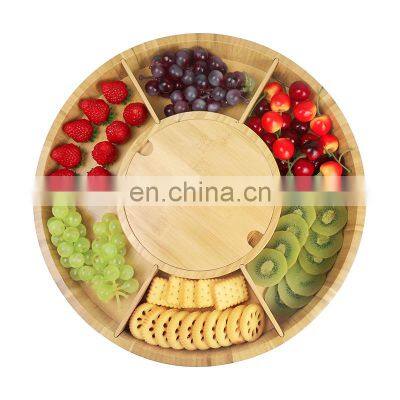 Custom Design Perfect Gift Choice Bamboo Cheese Board Set Charcuterie Platter Serving Rotating Tray