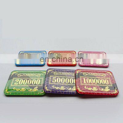Related ProductProduct Description-Step up your game of poker or teen patti with these massive rectangular poker bricks / plaques.-Each fillet weighs 6.8 x 4.8 cm-14.5 grams, 8.1 x 5.6 cm-22 grams, 9.4 x 6.6 cm-34.2 grams, making them much heavier than normal chips. However, you can still shuffle and play with them like traditional round poker chips. -These poker plaques make a great gift idea for any poker enthusiast and add a unique touch to any game.Product DetailsProduct namePoker ChipsColorRed, Purple, Green, Blue, Light green, Pink, YellowMaterialAcrylicSize & Weight6.8 x 4.8 cm-14.5 grams8.1 x 5.6 cm-22 grams9.4 x 6.6 cm-34.2 gramsPacking Size11 x 8 x 1 cmPacking Weight0.07 kgOEMAcceptedProduct ShowsCompany ProfileOur ServiceExpress Delivery by FedEx, DHL, TNT, UPS, EMS Shipment Weight1 - 45 kg45 - 200 kgor MoreMode of ShipmentBy CourierBy Courier / AirBy Air / SeaLead Time5 - 7 days5 - 7 days5 - 7 days30 days to Europe / USADoor to door delivery carrier includes: DHL, Fedex, UPS, TNT, EMS etc.A full range of sea and air logistics to provide you with the most convenientlogistics experience, rapid response to save your time.Payment TermsTrade AssurancePayPal / Secured PaymentWestern UnionBank TransferFor any amount< $ 5000For any amountFor any amountFrequently Asked QuestionsQ: Why choose us?• Lowest factory price with good quality• Low Minimum Order Quantity • Free sample to check quality• We also accept trade assurance order to protect buyerQ: What kind of method do you use to put customized logo?• Silk screen printing • Laser engraving • Etching• Stamping• Embossing / Debossing and any other mode you wantQ: How to save sample cost?• Stocked item, no MOQ. Small batch production also welcomedQ: How to get a sample?• We can supply free sample of standard product, you just need to bear the shipping cost.• For customized sample, please contact us for sample cost.Q: What is sample time and production?• Existing sample: 2-3 days• Customized sample: 7-10 days• Mass Production Time: 25-30 daysQ: What is your shipment term?• We can send your shipment by Sea / Air / Door to door courier, depends on the shipment size we can give you suggestions.• As we are sending shipments frequently by courier , we are getting good discount from the carrier, and we will transfer the benefit to you.Q: What is your term of payment?• We are quite flexible about payment, we accept T/T, PayPal, Western Union, Trade Assurance, etc.Contact DetailsPhone Number0086-512-68080479 (Ext No.602)Email IDsales@esunrix.comWhatsApp+86 13606131434Skypesunrise-sales3WeChatesunrix