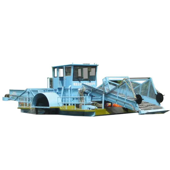 QY Factory Price Full Automatic Water Weed Harvester River Trash Cleaning Machine