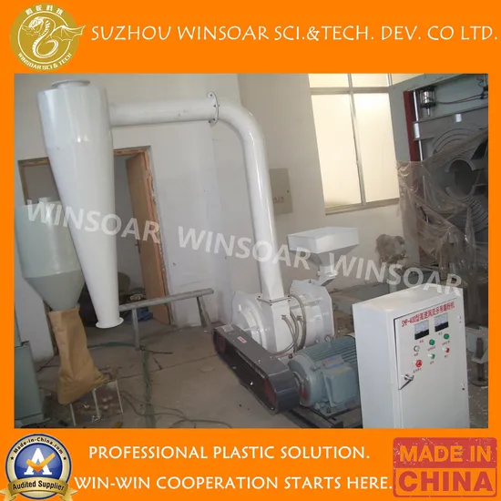 | Brief Introduction: This machine can be used for powder processing of polyethlene (PE), polyvinylchloride (PVC), polypropylene (PP), polystyrene (PS), ABS, nylon and other materials. Features: 1. The new disc design is used ,high-yield, strong resistance and the life of grinding disc is double the ordinary. 2. The use of newly designed professional bearings ,and reached a high rotation rate ,at the same time using only one drive motor, to ensure the efficient grinding crash, which greatly saves the time and operation of machinery and control engineering. 3. Installation and maintenance easy, open the door to cover clean-up. 4. Milling process of the whole seal, without dust leakage. 5. Full automated ,automatic feeding ,the materials and sorting. 6. Grinding gap adjustment is simple ,just use the plug-foot bolts and adjustments can be fine-tuning. 7. The host used the water and wind double cooling system, rational design of smaller cross-section of the grinding chamber, grinding is almost flat vertical surface. Material entered the grinding chamber as soon as caught, ground, and then rapidly removed, which eliminates the grinding chamber of the surge in materials, heating materials to avoid decomposition, resulting in improved production. |