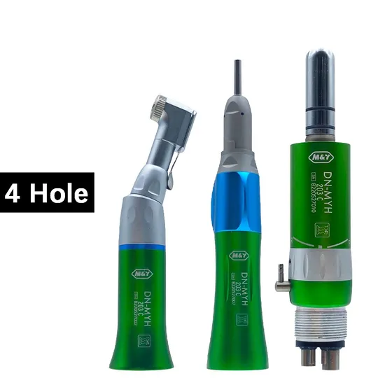 Product Parameters Ex203c: Dive into a kaleidoscope of colors with our Low Speed Handpiece Kits, featuring the versatile Contra Angle, robust Airmotor, sleek Straight Handpiece, and precision-driven Air Turbine, adaptable for both 2-hole and 4-hole configurations.