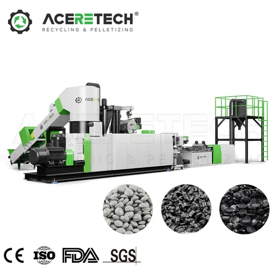 Top-of-the-range crushing compacting pelletizing machine, excellent degassing and filtering performance for recycling.The ACS-Pro is the entirely new standard recycling and pelletizing system with optimized super long L/D ratio, filtering ahead of vacuum degassing, specially suit to the waste plastics such as high contaminated and heavily printed recycling and pelletizing.