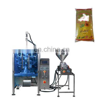 Dession Automatic 1 litre Liquid Mineral Water Pouch Packing Machine PriceProducts DescriptionDession liquid packing machine is suitable for the packaging of various liquid and sauces, such as soup,edible oil,liquid medicine,cream,seasoning sauce,honey,shampoo and shower gel etc.1. The section where the material contact is stainless steel as the body of machine is optional for complete or partial stainless steel and all out equipments have passed the CE Standard. 2. Optional English or Chinese screen display, easy and simple operation. 3.High-sensitivity photoelectric color tracing and digital input of cutting position get more accuracy.4. Packaging speed and length of bags can be set to some extent without further adjustment and parts changing. Packaging speed and length of bags can be set to some extent without further adjustment and parts changing. 5. Bag-making, filling, sealing,cutting, counting, thermal pressing of batch number can be achieved automatically and straightly. 6. Flat cutting, pattern cutting, linking cutting can be realized by changing the tools;easy operation with smooth bags. 7. Bag-making equipment can be changed according to specific requirement of customers and products.Machine HostModelDS-420LMeasuring Range150~1500 mlPackaging Speed5~60 bags/minBag SizeL:80~300 mmW:60~200 mmFilm Roll WidthMax.420 mmPower Requirements220V,50/60 HZ,2.2KWMachine Dimension(mm)(L)1217*(W)1015*(H)1343Liquid PumpMeasurement Range100~1000 mlAir Onsumption0.4~0.6 mpaMax. Weighing Speed10~35 n/minMachine Dimension(mm)(L)1150*(W)280*(H)300Machine Weight25KGProduct ConveyorConveying capacity60 bags/minPower Requlrements220V,0.75KWMachine Weight40kgRecommend ProductsIf you need to pack a larger machine or other bag type machine, we have more products to recommend to you.DS-320Y Liquid Packing MachineSuitable for 1~500ml water,juice,jelly.DS-200Y Sauce Packing MachineSuitable for 1~100ml ketchup.DS-200Y Honey Packing MachineSuitable for 1~100ml honey,gel,oils.Our CompanyCertificationsPacking & DeliveryPayment1.T/T and Western Union are accepted2.30% deposit before production and 70% balance before shipment3.All banking charges outside China are on buyersShipping1.Upon receipt of payment , delivery date will be in 15-30 working days,2.By Air, by Sea or by Express (DHL etc)3.Shipment cost will depend on the destination, shipment way and the weight of the goodsFAQQ1:Do you have manual or operation video for us to know more about the machine? Yes, not only manual or operation video, 3D drawing also available to make as per your design,also the video we can make of testing the material from our packaging machine if your packing goods easier for us to find from our local market. Q2:How can I trust you for the first time business ?Please note our above business license and certificate. And if you don't trust us, then we can use Alibaba trade assurance service, guarantee your money, and guarantee your machine's on-time delivery and machine quality.Q3:Is engineer available to serve oversea?Yes, but the travel fee is paid by you. So actually to save your cost, we will send you a video of full details machine installation and assist you till the end.Q4:How can we make sure about the machine quality after we put the order?Before delivery, we will send you the pictures and videos for you to check the quality, and also you can arrange for quality checking by yourself or by your contacts in China.Q5:Will you provides the door to door service?Yes. Please offer us your final destination, we will check with our agent to see if it available, and most of the area is ok for us to clearing and sending in your countries.Why Choose Us
