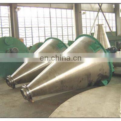 Product Description1. Working Princeple:Double Screws Cone Mixer is short for the cantilever Double Screws Cone Mixer.It is suitable for the solid – liquid,solid-solid materials mixing.The material barrel of the machine is an inverted cone,in which there are two non-symmetrical upgrading screw equipped.When the screw rotates,it will produce a lfting force to make the material to the upper of the barrel, and aggregates in the depression then falls down to fill up the vacancy.2.Application: It is widely used in chemical, food,building materials, rare earth, food, pesticides and dye production industry.a. Plastic, rubber, silicone rubber, dyes, pigments, inks.b.Chewing gum, bubble gum,pharmaceutical chemicals, carbon fiber.c. Milk powder, feed, additives, ceramics, refractory materials. 3. Features: (1)The mixer has many types. such as heating type, cooling type, vacuum type and heavier type. According to your needs, we can add a jacket in the external of the barral.(2)If the material's viscosity are heavy, you can adopt to ribbon mixing method to mix the materials.(3)There are two types of driven form : manual drive and pneumatic drive.FAQ² Installation and after-sale Service We provide complete installation &operation manual for all machines supplied by us.Calling our technician to get advice Sending email to our technician Live chat with our technician on skype,trade manager,MSN,whats app,Wechat Inviting our technician to your factory ² Warranty All the machines made by QUANTA MACHINERY are warranted for one year .-- By T/T.(40% by T/T for an order, the balance to be paid before delivery.Company InformationShandong Longxing Chemical Machinery Group Co., Ltd is not only the professional base for the chemical machinery, but also one of the fixed companies for China National Chemical Equipment Corporation.Our group has the Design License of Special Equipemnt in Grade D1 &D2, the Manufacture License of Special Equipment in Grade A1 &A2.We also have the Maufacturer License of Special Equipment in Heat Transfer Oil Furance, ISO Quality System Certification and the CE Certification. Packaging & ShippingWe could package the product according to the customer's demand. Packaging Detail:wooden carton(can be customized according to user's requests and specifications)Delivery Detail:With 30 days on receiving deposite payment Our Services 1. Technical guidance , according to customers’ raw material and capacity requirement , make the most suitable line and quotation 2. visit to our factory and have an investigation and performance test 3. engineers avaliable to service machinery overseas. 4. warranty 1 year,quality guarantee, except wear parts and wrong operation Contact Us