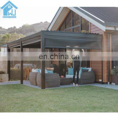 Product DescriptionOur this aluminum pergola is 100% water proof with internal gutter .We can do electric and manual control.The post size of our this aluminum pergola is 150x150x3mm which is very strong to hold the top louver roof system .We can custom any sizes for the aluminum pergola and you can choose motorized and manual control way.As we have our own color cutsomized work shop , we can custom any colors base on RAL color card .For the other accessories like side curtains/blind , LED lights ,heater ,wind/rain sensor , fan and so on , we cal also provide. And we can provide very detailed installation videos, so don't worry about the installation .Welcome to contact and inquiry .Product Name:PergolaPost size:150x150x3mm thickness aluminum profile very strong for aluminum pergola systemWidth Range:2.5m - 13.5mElectric Motor's Voltage:110V Or 230VRemote Control:1 Channel or 5 ChannelGutter:Complete with Gutter and Rain Spout for Inbuilt PVC DownpipeLouvres Blade Size:150mm /200mm/ 265mm Aerofoil Type Available, Waterproof Eeffictive DesignPivot Bolt:Highly Durable Aluminum with PP Blade End CapsOther Componentries:Heavy-duty internal fittings, Plastic bush, SS Grade Stainless Steel ScrewsTypical Finishes:Durable Powdercoated for Exterior ApplicationColors Options:We have our own color customized factory , we can custom any colors for youMotor Certification:TUV,CE,SGSHow the water come out : Our aluminum pergola with internal gutter system , the rain/water will come out from the bottom of post,like below picture .ProjectFactory and Package5 Stars review :FAQQ1:How to guarantee the quality of the products?We have our own QC team to control the products quality for all our clients'orders before loading.Q2:How long does it take to install a louvres roof /pergola?It depends on te skills,help and tools, usual 2-3 workers will finish the installation 50m 2 in one day.Q3:It is the louvre roof /pergola rain proof?Yes,the normal weather cnditions,even heavily rain,the roof /pergola will not let in rain.Q4:How does the rain sensor work?The control system normally programmed to close the louvres when rain is detected.Q5:Are louvres roof/pergola energy efficient?The adjustable louvres blade help to reduce heating and controlling the amountof direct sunlight.Q6:Can the louvres roof/pergola used next to the sea?All accessories in aluminium alloy,stainless steel and brass to avoid any rust and corrosion.Q7:How we do business?Take care of your prducts and serve your needs.Contact us by E-mail or by phone. Other Main Products