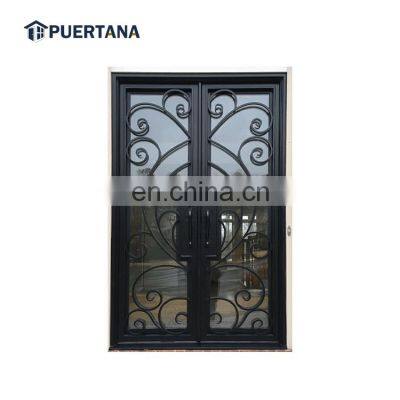 Pictures Simple Interior Single / Double Wrought Iron Gate Front Door Design PricesProduct Description Product Name:Wrought iron doorMaterial:Wrought ironColor:Matt black;white;ultra silver;clear anodized;CustomizedSurface Treatment:1. Powder coated2. Anodized3. ElectrophoresisAntirust WayGalvanizing(hot dip) or zinc spraying, antirust paintingGlass:Tempered GlassPerformance:Heat & Sound insulation and WaterproofDoor HandlingLeft/handle-Hand / Outswing or inswingPacking:1. EPE + Waterproof plastic film2. EPE + Waterproof plastic film + Wooden frame3. EPE + Waterproof plastic film + Wooden caseCompany Information Founded in 2010,Foshan Puertana building materials Co.,Ltd. is a modernized enterprise that specializes in high-end aluminum alloy doors&windows,solid wooden doors,sunrooms and shower rooms etc, integrating R&D,manufacturing,sales and service.It covers 30,000 square meters, and has over 500 staffs. With the daily growing brand of PUERTANA and superior research team to make low carbon environmental products, PUERTANA has reached the goal of competitiveness. The products have gained many national patents by the external appearance,structure and practicability. Dedicated to strict quality control and thoughtful customer services, our experienced staff members are always available to discuss your requirements and ensure full customer satisfaction. We are One Stop Building Materials Supplier , we mainly working with the Housing Builder, Developer, Contractor and individul houses , most of our customers from North America , Europe , Australia , and our products can meet the local Building Code. Packaging & Shipping Our Services ProjectsFAQQ: What's your MOQ?A: Our MOQ for aluminum products are 10m2, for wood doors is 10 sets. Q: What's your payment term?A: T/T 30% deposit, full balance against delivery Q: Can you help with delivery?A: Yes, we can do FOB, CFR, CIF, DDU. Q: What's your period of production time?A: Normally it's 25-30 days. It's negotiable. Q: Will you check the products' quality before delivery?A: Yes, we have QC department so we can make products 100% good for you. Q: What color can you do for the products?A: We have standard colors for every product. But we can customize it for you.Contact