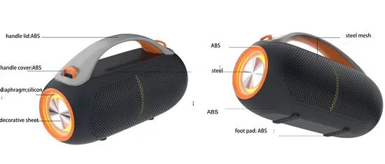 Contents in Color box: 1 Speaker; 1 Manual; 1 Charging cable; 1 AUX cable;1 Carrying strip