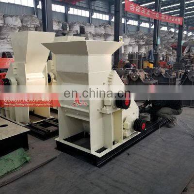 Products DescriptionDouble stage hammer mill crusherThe double stage hammer mill crusher can easily crush high-humidity materials such as coal gangue, shale, coal slag and other materials. Used as gangue and coal slag as additive and internal fuel for brick factory; using gangue and shale to produce standard brick and hollow brick.Product DescriptionWorking principleWhen the materials get into the working area of hammers, the rotating hammers with high rotation speed are crushing them, the crushed products meeting the required size can be discharged by the outlet and become the final products, the large size products are brought back to the crushing area by the hammers for being re-crushed until they reached the required size. When the bulk material into the machine, hit by the hammerhead and stopped by material bracket. That's not only increase the contact area between material and hammerhead but also avoid sudden infarction of the rotor. After the impact, bulk materials hit themselves on the crushing cavity. Then the stones overflow from the straight screen or falling and been hammered again forming the stones. At last discharged from outlet of the hammer crusher.Product CharacteristicsThe double stage hammer crusher is equivalent to two hammers broken into one, which is reasonably combined into a whole. Two sets of rotors are used in series and have the following characteristics:1. Two rotors up and down crushingThe two sets of rotors connected in series make the materials crushed by the upper rotor immediately crushed again by the hammer head of the lower rotor rotating rapidly. The materials in the inner cavity collide with each other quickly and crush each other to achieve the effect of hammer powder and powder powder. Unload directly.2. There is no grate bottom, high-humidity material, and it will never be blockedThe traditional grinder with grate sieve plate is not suitable for raw materials with a moisture content higher than 8%. When the raw material moisture content is higher than 10%, it is easy to cause serious blockage, so that the hammer head cannot rotate, the material cannot be discharged, or even burn A bad motor seriously affects production.The design of this machine has no grate bottom, no strict requirements for the moisture content of the material, and there is no problem of blocking the sieve plate, and there is no problem that the fine powder cannot be discharged in time, repeated crushing, so the crushing efficiency is high, and there is no hammer head. Invalid wear phenomenon.Recommend ProductsJaw crusherfour roller crusherimpact crusherOur AdvantagesHammer headThe weight of the hammer head can be customized according to thecustomer's requirements. The hammer head is made of new high-quality multi-element high chromium manganese steel composite casting, and its service life is several times that of the general hammer head.SpindleThe material of the spindle is made of high quality alloy steel, which is processed by ultrasonic inspection for quenching and tempering.High strength steel carburizing heat treatment was used to improve the wear resistance of hammer disc and hammer hole.Lining plate and strike plateIn order to prevent the abrasion of the frame, the inner wall of the frame is made of manganese steel. The striking plate is made of high-strength steel and quenched and strengthened. The superior abrasion resistance and impact resistance of the lining and striking plate are guaranteed.CertificationsHammer crusher CE CertificationISO Quality System IdentificationMotor CE certificationProduct ParamentersModelSCP 600×400SCP 600x600SCP800×600SCP 900×800SCP 1000x800Feeding Size ( mm )≤100≤150≤200≤260≤400Outlet Size( mm )≤3(<2mm above 90%)≤3(<2mm above 80%)≤3(<2mm above 80%)≤ 3(<2mm above 80%)≤3(<2mm above 80%)Capacity( t/h )15-2515-3050-7050-9060-120Motor Power ( kw )18.5+2222+2237+4555+7575+55Dimensions( L× W ×H )( mm )2560×1020×16502760×1280×17503760×1314×21403870×1700×31504500×1700×3150