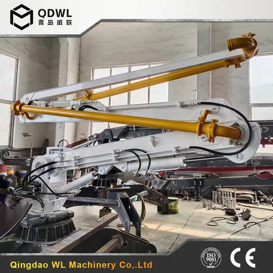 1. It has three arms design, "R" folding. The machine is driven by hydraulic and slewing flexibly, with wide working range. Arms adopt high strength steel plate which is stronger and lighter.2. Two modes of operation: wireless remote control and cable remote control, easy to operate.3. Inner-climbing frames: floor frames or wall (lift or shaft) frames, which are suitable for different jobsites.4. The main electronic components of this Concrete Placing Boom are products of the world-famous brand, with high-quality.