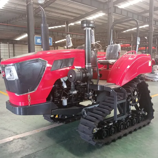 The rubber crawler tractor has the advantages of small grounding pressure, large adhesion and good passability in paddy field, so as to realize protective tillage in paddy field.At the same time, dryland work compacts the soil much less than wheel tow.Rubber crawler tractor adopts hydraulic control planetary differential mechanism, small turning radius (can be turned in situ), flexible turning turn, reduce the field turning transfer and other auxiliary hours, rotary tillage work efficiency is 10-20%, ploughing work more than 20%.The rubber crawler tractor adopts the whole frame structure, good rigidity and high clearance from the ground. It is especially suitable for the paddy field where the mud bottom is deeper and the wheeled tractor is difficult to operate.It is an ideal power machine for paddy field cultivation in rice producing areas.
