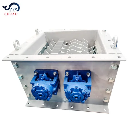 SDCAD Lump Breaker consists of a square cross section casing with upper and lower flange, two horizontal rotating shafts equipped with chopping knives, a grid to hold back lumps, four end bearing assemblies with integrated adjustable shaft seal, an appropriately sized drive unit complete with power transmission.