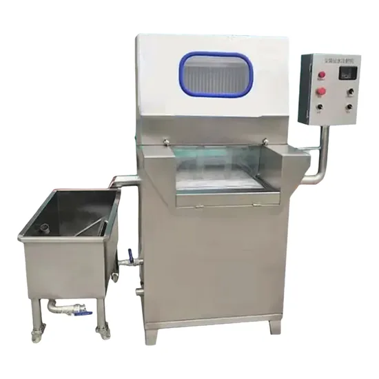 Injecting salt water into the meat for thorough marinating, and injecting the prepared water solution into the meat chunks can make the meat tender and soft. The salt water injection machine improves the grade and yield of meat products. According to different process requirements, the step speed, step distance, gap between the meat pressing plates, and injection pressure can be adjusted to evenly and continuously inject the pickling solution into the meat, achieving the desired injection effect. This machine is made of stainless steel material with a reasonable design, rigorous structure, easy operation, convenient cleaning, and hygiene. It has an automatic protection device. When the injection needle touches a hard object, it will lift up without being damaged. The function is to inject salt water into the meat to fully marinate it. The meat chunks injected with the prepared water-soluble solution can make the meat tender and soft, improving the quality and yield of meat products.
