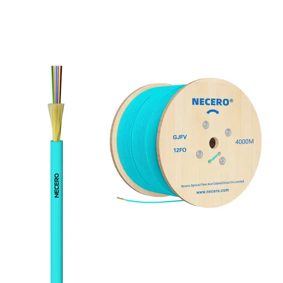 GJSFJV fiber cable, Φ900μm or Φ600μm tight buffer fibers are wrapped a layer of flat stainless steel wires and then add a layer of aramid yarn as strength unit, finally into fiber optic cable with PVC or LSZH sheath.