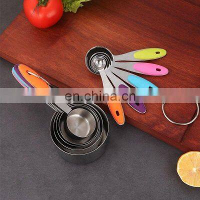 Related ProductProduct Description10 DIFFERENT SIZE SET- The measuring cups and spoons set has five different sized cups and five different sized spoons to ensure you have the right measurement for any recipe. Cup sizes are: 1 cup/250 mL, 1/2 cup/125 mL, 1/3 cup/80 mL, 1/4 cup/60 mL, 1/8 cup/30 mL. Scoop sizes are: 1 tbsp/15 mL, 1/2 tbsp/7.5 mL, 1 tbsp.SET QUALITY CONSTRUCTION - Made from premium food grade stainless steel, these spoons can be used for any food. They are rust-proof and anti-corrosion, which makes your kitchen always safe and healthy. It is a must-have set for home and professional use, with guaranteed durability.NON-SLIP HANDLES - Worry no more about accidental spills and drops of your recipe materials. The colorful non-slip handles ensure the best functionality, easy grip and safe heat resistance quality that takes your cooking to a new level. Get rid of accidental burns and spills once and for all!EASY TO USE- Thoughtful features on these stainless steel measuring spoons and stainless steel measuring cups include a flat base design for stability and long, thick, sturdy handles that allow each spoon to fit easily in spice jars and hard-to-reach spaces. Easy to read, etched markings will last a lifetime and will never rub off or fade.A MUST HAVE FOR EVERY KITCHEN - Perfect for home lover or foodie. It is a great utensil to measure everything you need when cooking or baking. It can be used for liquid or wet ingredients, such as salt, sugar, spices, etc.Product DetailsProduct nameMeasuring SpoonColorOrange, Purple, Light blue, Green, PinkMaterialStainless steel + SiliconeWeight 460 gramsPacking Size20 x 10 x 6 cmPacking Weight0.5 kgOEMAcceptedDESCRIPTIONPRICE ($)Set of ten measuring spoons and measuring cups (neutral color box)5.61Set of five measuring cups (PP bag)3.82Set of five measuring spoons (PP bag)1.39Product ShowsCompany ProfileOur ServiceExpress Delivery by FedEx, DHL, TNT, UPS, EMS Shipment Weight1 - 45 kg45 - 200 kgor MoreMode of ShipmentBy CourierBy Courier / AirBy Air / SeaLead Time5 - 7 days5 - 7 days5 - 7 days30 days to Europe / USADoor to door delivery carrier includes: DHL, Fedex, UPS, TNT, EMS etc.A full range of sea and air logistics to provide you with the most convenientlogistics experience, rapid response to save your time.Payment TermsTrade AssurancePayPal / Secured PaymentWestern UnionBank TransferFor any amount< $ 5000For any amountFor any amountFrequently Asked QuestionsQ: Why choose us?• Lowest factory price with good quality• Low Minimum Order Quantity • Free sample to check quality• We also accept trade assurance order to protect buyerQ: What kind of method do you use to put customized logo?• Silk screen printing • Laser engraving • Etching• Stamping• Embossing / Debossing and any other mode you wantQ: How to save sample cost?• Stocked item, no MOQ. Small batch production also welcomedQ: How to get a sample?• We can supply free sample of standard product, you just need to bear the shipping cost.• For customized sample, please contact us for sample cost.Q: What is sample time and production?• Existing sample: 2-3 days• Customized sample: 7-10 days• Mass Production Time: 25-30 daysQ: What is your shipment term?• We can send your shipment by Sea / Air / Door to door courier, depends on the shipment size we can give you suggestions.• As we are sending shipments frequently by courier , we are getting good discount from the carrier, and we will transfer the benefit to you.Q: What is your term of payment?• We are quite flexible about payment, we accept T/T, PayPal, Western Union, Trade Assurance, etc.Contact DetailsPhone Number0086-512-68080479 (Ext No.602)Email IDsales@esunrix.comWhatsApp+86 13606131434Skypesunrise-sales3WeChatesunrix
