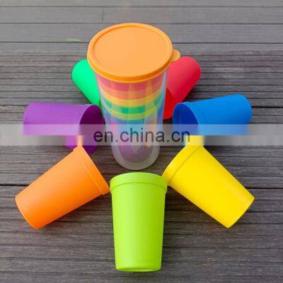 Rainbow Color Reusable Plastic Cups Set Product DescriptionRainbow Color Reusable Plastic Cups Set picture Details description of Rainbow Color Reusable Plastic Cups Set1) PP material, food grade material2) Extra cost for 1c 1 position logo is $0.02/pc3) Capacity 500-600ml Model NO.PT95625Material Plastic PPSize Size of outer cup:8*8*17cm,63gSize of inner cup:6.8*4.6*9.2cm,16.3gUnit weight177gLogoSilk or heat transfer printing or stamp printing Color As per picture Details pictures of Rainbow Color Reusable Plastic Cups Set Packaging & ShippingPacking details for Rainbow Color Reusable Plastic Cups Set1set/polybag,72pcs/ctnCtn size:45*33*57cmG.W./N.W.:13.5/12.5kgsOur Services1) Your inquiry will be replied within 12 hours.2) Well-trained & experienced sales can reply your inquiries in English.3) Working time: 8:30 am ~6:00 pm, Monday to Friday (UTC+8).During working time, E-mail will be replied to you within 2 hours4) OEM & ODM projects are highly welcomed. We have strong R&D team.5) The order will be produced exactly according to order details and proofed samples. Our QC will submit inspection report before shipment.6) Your business relationship with us will be confidential to any third party.7) Good after-sale service.Company InformationNingbo Pinbo Plastic Manufacturer is one of most competitive supplier specializes in promotional gift items, was established in 2006. With more than 160 persons and many modern facilities, currently, we have already exported to America, Europe, Japan, Mexico and 20 other countries and regions. Your OEM and ODM product are welcome, our 6 experienced engineers and designers can work on your ideas. We regards “high quality, competitive price, on-time delivery, and fast and effective communications” as our tenet, hope to cooperate with more customers for mutual development and benefits. FAQOur partners: