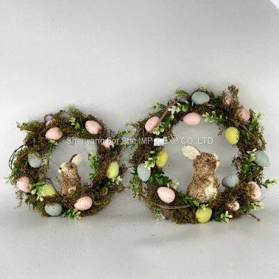 Product Name: Shenyang For Star Wholesale Handmade Craft Home Decoration Door Easter Egg Wreath With Bunny