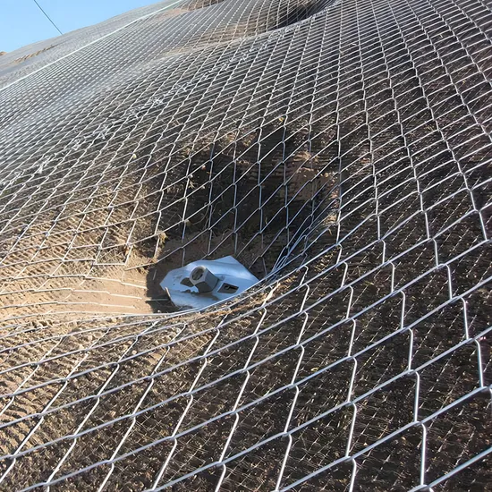 The slope protection system wire mesh is made of 3mm or 4mm high-strength steel wire. One wire has a tensile strength of more than 1770 N/mm², which provides reliable stability for the slope and effectively prevents or controls rockfall, forming a protective barrier on the rock surface. It can be used to stabilize almost any type of slope, whether it is rock or loose soil.