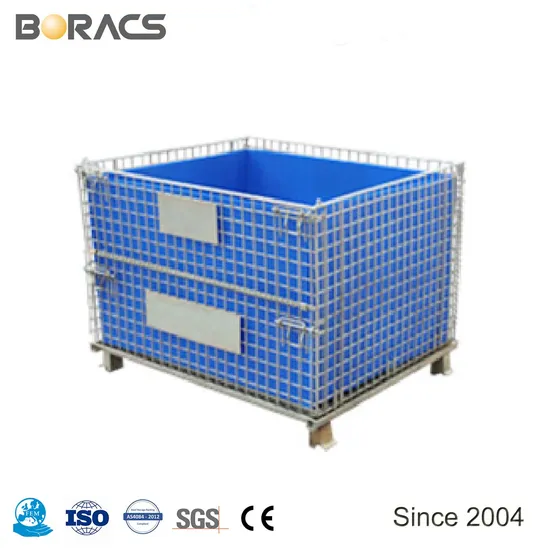| Main features | 1. Collapsible-save space when not in use, ideal for return journeys 2. Standard half-hinged gate access 3. Long lasting, economical alternative to disposable packing 4. Open wire mesh design allows for full visibility for inventory checks, ventilation and cleaness. |