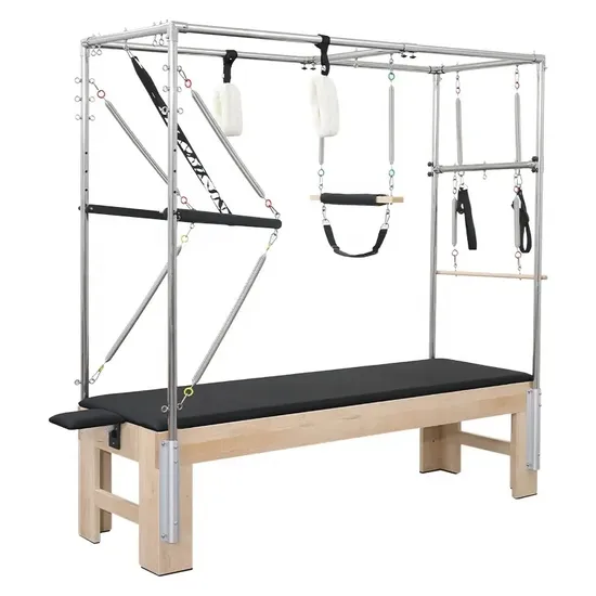 Product DescriptionCustomized Design: This product allows for customized color and logo options, enabling users to personalize their equipment to suit their specific preferences.Multifunctional Workout: The Big Discount Custom Pro Yoga Body Building Gym Home Fitness Equipment Wood Pilates Reformers is designed for bodybuilding, fitness, and yoga training, offering a comprehensive workout experience. High-Quality Materials: Constructed from wood, this product ensures durability and stability, making it suitable for regular use.Compact Size: With dimensions of 2280*850*212mm, this equipment is ideal for home use, saving space while still providing an effective workout.User-Friendly Features: Available in a minimum order quantity of 1 set, users can easily incorporate this equipment into their fitness routine, regardless of their experience level or specific needs.Product BenefitsResistance system of 6 springs, red is the heaviest, green is medium, and yellow is the lightest The raw materials of the spring are imported from Germany and have been stretched more than 500,000 times.Double loops strap made of pure cotton material, soft and comfortable The height of the headrest and the width of the shoulderpillow can be easily adjustedPadded Jumpboards add great versatility to your Reformer. In addition to allowing jumping and other cardio exercises, a Padded Jumpboard also recreates a biomechanically accurate standing position while lying on the Reformer.Using special sailing wheelRelated ProductsCompany Profile