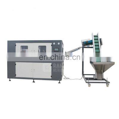 Full automatic small bottle blow moulding machine blowing equipmentProduct DescriptionSpecifications:GD-A4 automatic water bottle blowing machineCE approvalSpeed: 4000pcs/h for 500ml pet bottleFeature:1. Have the function of auto alarm, auto problem checking and judgement.2. This automatic bottle making machine can install many different kinds of blowing craft parameter, when changing different mould and perform, can readjust the statistics from computer, easy operation.3. Adopts Germany, Japan, Taiwan pneumatic components, ensure the machine with low problem.4. The blowing machine have the characteristics of high sensitivity, fast speed switch, low problem, stable and safety operation. The whole machine adopts standard Anti vibration structure, can reduce the vibration to the lowest when high speed operation, enrich the life of spare parts5. Air passage design the action and blowing air with two parts, to ensure the different action with different pressure when blowing bottles.6. The automatic blowing machine adopts double crank shaft, main connecting rod linkage with strong clamping force, have the function of mould close boost pressure when high pressure blowing bottles, the action stable and reliable.7. The moving parts of opening and closing mold of the automatic blowing machine adopts high speed inline guide track, have the characteristics of high durable, high speed no shaking when opening and closing mold. Machine show Our engineer make 2D drawing for free Main technical parameter:ModelItemGD-A2GD-A4GD-A6ProductivityDepend on bottle design1800-2700pcs/h3200-4000pcs/h4000-5500pcs/hBottle specificationVolume0.1-2.0L0.1-2.0L0.1-2.0LBody diameter≤100mm≤100mm≤100mmHeight≤300mm≤300mm≤300mmNeck diameter28mm-38mm28mm-38mm28mm-38mmMoldCavity246Mold thickness240mm240mm240mmMold volume260*240*370mm510*240*360mm640*240*360mmMain machine powerRated power25kw49kw73kwUsage power6.5kw13kw25kwAir systemHP air compressor1.4m3/min 3.0MPa2.0m3/min 3.0MPa6.0m3/min 3.0MPaLP air compressor1.0m3/min 1.0MPa1.6m3/min 1.0MPa2.0m3/min 1.0MPaAir tank0.6m3 3.0MPa0.6m3 3.0MPa1.0m3 3.0MPaAir dryer1.0m3/min 3.0MPa2.0m3/min 3.0MPa6.0m3/min 3.0MPaCooling water systemWater chiller3HP3HP3HPMain blowing machineSize(L*W*H)1900*1280*1930mm1900*1860*1930mm4100*2400*1930mmWeight2000kg3600kg4200kgPreform unscramblerSize(L*W*H)2000*950*2480mm2000*950*2480mm2000*950*2480mmWeight250kg250kg250kg Component listNoNameModelBrandCountry of origin1High pressure valve321H-35-2995PakerAmerica2Low pressure valve7321BAN00-DC24VPakerAmerica3Check valve9C800SPakerAmerica4Action solenoid valve AirTACTaiwan5Host powerNES-200-24VMEANWELLTaiwan6PLCFX1N-60MRMitsubishJapan7Touch screenTK6070IHWEINVIEWTaiwan8Standard cylinderSC100X135-SAirTACTaiwan9Thin cylinderSDAS25X43-BAirTACTaiwan10Pneumatic processing elementsGR20008-F1AirTACTaiwan11Swing cylindersDSR-25-180-PFESTOGermany12Quick exhaust valveSEU-3/8FESTOGermany13Proximity sensor AutonicsKorea14Photoelectric switch OPTEXJapan15Module SEMIKRONGermany16Ruby lampCR30-15DNHAICHUANGChinaCompany Information Our teamProject casesFAQQ1: How to find suitable machine or complete beverage production line?A1: Looking for beverage filling machine in www.grandeemachine.en.china.cn •Enquiry: Contact us by email, phone call, fax, Instant Messenger (Trade manager, Skype, WhatsApp, Wechat) and let us know your requirements • Discussion: Specify the items and what are you exactly looking for. Q2: Are you a trading company or a manufactory?A2: We are the manufacture of water/beverage filling machine and water treatment system over 10 years.We just not only sell drinking water machines and other related equipment , Quality is our culture. We have rich experienced engineers with technicians working team , providing good and after-sales service term , professional salesman terms . Q3: Do you have technical support after we purchased your machines?A3: We will arrange our professional technical to go aboard to your factory, they will help you and teach you how to install and maintenance the machines which you purchased. Or help you to fix machine when it has problems. Q4: If you buy our machines, can you offer us wear-out spare pats?A4: We provide our high quality machine 2 years guarantee , and we will also offer you 2 years wear-out spare parts for free. Once your machines broken or doesn't work within 2 years and you can't solve it, firstly, we will try to help you to find problems from your words description by phone or other communication tolls. Secondly, if the phone solutions still not work, our engineers will go to your factory to solve it. Meanwhile, they will teach you the related experiences for fixing.