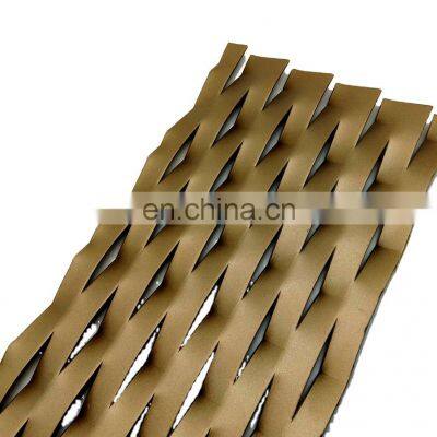 Expanded Metal Product DescriptionExpanded Metal is produced from solid sheets or plates of carbon, galvanized and stainless steel, as well as aluminum and a variety of alloys of copper, nickel, silver, titanium and other metals. Because expanded metal is made from a solid sheet of metal,not woven or welded,so can never unravel.Product ShowItemSWDLWDStrand WidthStrand ThicknessDJ-ES-1340.20.3DJ-ES-2480.31DJ-ES-37120.51DJ-ES-418452.51.5DJ-ES-5460.50.5DJ-ES-63015011.2DJ-ES-75100.50.5DJ-ES-88160.70.6DJ-ES-910200.70.7DJ-ES-1011200.31.1DJ-ES-1110200.3-0.51.2DJ-ES-124.560.40.5DJ-ES-139170.71.3DJ-ES-1411200.61.8DJ-ES-1515502.51.5DJ-ES-1614250.90.8DJ-ES-17152410.8DJ-ES-187151.50.9DJ-ES-1917343.11.1DJ-ES-205101.51Production ProcessApplicationsFacade CladdingWindow MeshBarbecue Grill Ceiling/Curtain WallFurniture like Chair/Desk/LampsSecurity FencingMicro Battery Mesh Cages Space dividerDecoration ScreensWalkway & StairsPlaster or Stucco MeshIn addition to the above applications, there are many others. If you have other ideas, pls contact us. You May LikeOur FactoryANPING DONGJIE WIRE MESH PRODUCTS CO., LTDAnping Dongjie Wire Mesh Product Co., Ltd is founded in 1996,a professional manufacturer of wire mesh products.We have engaged in expanded metal mesh, perforated metal mesh, deep-processing wire mesh and stamping parts for more than 20 years.We have past have past ISO9001&SGS certificates,and has professional workshops, advanced technology and a complete quality control system to ensure excellent processing service with most competitive prices.As always stuck into “Quality Proves Strength, Details Reach to Success”, Dongjie has achieved highly acclaim in the old and new customers. Our Advantages1. Sample is free.2. ODM&OEM.3. Professional production team.4. We have full stocks, and can deliver within short time.5. Strict quality control team as per ISO&SGS.Good Quality + Factory Price + Quick Response + Reliable Service.We have rich experience of design, manufacture and exportingPacking&DeliveryQuantity(sqm)Delivery TimeShipping WayShipping Time1-3003-5 days after received your paymentDoor to door by express5-10 days300-5005-10 days after received your paymentDoor to door by express5-10 days500-100010-15 days after received your paymentShipping by airShipping by sea20-30 daysCerticificationsCustomer FeedbackExhibitionsFAQQ:1.When can we get your reply? A:Within 24 hours after get your inquiry.Q2.How to make an inquiry of Expanded Wire Mesh? A2: You need to provide material, sheet size, LWD SWD and the quantity to ask an offer. You can also indicate if you have any special requirement . Q3. Could you provide free sample?A3:Yes, we can provide free sample in half A4 size together with our catalogue. But the courier charge will on your side. We'll send back the courier charge if you make an order. Q:4. All costs will be clear?A4:Our quotations are straight forward and easy to understand.Q:5.What types of materials are made into expanded metal sheet?A5:There are many types of materials made into expanded metal sheet. For example, aluminum, carbon steel, stainless steel, nickel,silver and copper can all be made into expanded metal sheets.Q:6. What about the delivery time? A:Normally 20 days, will depends on order quantity.Q7. How is your Payment Term?A7:Generally, our payment term is T/T 30% in advance and the balance 70% against the copy of B/L.Other payment term we can also discuss.