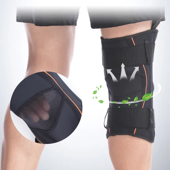 3.Tiras de resorte: las tiras metálicas de doble hélice ocultas a ambos lados de la rodillera son suaves y elásticas, proporcionando suficiente compresión y soporte para la rodilla y la patela.
