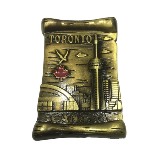 Custom TORONTO Fridge Magnets For Refrigerator Vintage Metal CANADA Tourist Souvenir Magnets For Refrigerator Fridge magnet is popular as a tourist souvenir gift, any size with customized logo, because the fridge magnet is a very good carrier for tourist souvenirs.The design of the refrigerator magnet size is easy to pocket or purse for tourists. Custom fridge magnet records the traces of tourists passing through the world. People often think of the memories of those people, those things, and those moods during a travel time. Buying a refrigerator magnet is a collection of feelings. These are the meanings of the existence of tourist souvenirs