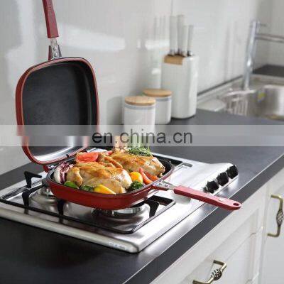 Related ProductsProduct Description 1. You enjoy beautiful char-grilled steak, meats and vegetables thanks to the deep griddle lines and that also help to draw fat away from your food so it is healthier. 2. Unique triple layers of sand-blast non-stick ceramics coated pan allows to cook anything, even seafood with hard shell - crabs, clams and cockles. 3. Grill pan, flat pan, upper and lower plates are separated and can be used individually.Product Type:Non Stick PanMaterial:Aluminum AlloySize:28cm 32cmColor:RedCompany ProfileOur ServiceExpress Delivery by FedEx, DHL, TNT, UPS, EMS Shipment Weight1 - 45 kg45 - 200 kgor MoreMode of ShipmentBy CourierBy Courier / AirBy Air / SeaLead Time5 - 7 days5 - 7 days5 - 7 days30 days to Europe / USADoor to door delivery carrier includes: DHL, Fedex, UPS, TNT, EMS etc.A full range of sea and air logistics to provide you with the most convenientlogistics experience, rapid response to save your time.Payment TermsTrade AssurancePayPal / Secured PaymentWestern UnionBank TransferFor any amount< $ 5000For any amountFor any amountFrequently Asked QuestionsQ: Why choose us?• Lowest factory price with good quality• Low Minimum Order Quantity • Free sample to check quality• We also accept trade assurance order to protect buyerQ: What kind of method do you use to put customized logo?• Silk screen printing • Laser engraving • Etching• Stamping• Embossing / Debossing and any other mode you wantQ: How to save sample cost?• Stocked item, no MOQ. Small batch production also welcomedQ: How to get a sample?• We can supply free sample of standard product, you just need to bear the shipping cost.• For customized sample, please contact us for sample cost.Q: What is sample time and production?• Existing sample: 2-3 days• Customized sample: 7-10 days• Mass Production Time: 25-30 daysQ: What is your shipment term?• We can send your shipment by Sea / Air / Door to door courier, depends on the shipment size we can give you suggestions.• As we are sending shipments frequently by courier , we are getting good discount from the carrier, and we will transfer the benefit to you.Q: What is your term of payment?• We are quite flexible about payment, we accept T/T, PayPal, Western Union, Trade Assurance, etc.Contact DetailsPhone Number0086-512-68080479 (Ext No.602)Email Idsales@esunrix.comWhatsApp+86 13606131434Skypesunrise-sales3WeChatesunrix