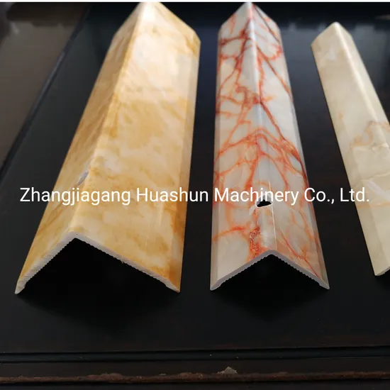 High glossy PVC UV marble profile extrusion machine for decoration mainly produce PVC imitation marble profile, skirting line, floor board ,ceiling corner, tile ,Wall Panel, background wall,waterproof platform etc for indoor and outdoor building and decoration.The whole production line: