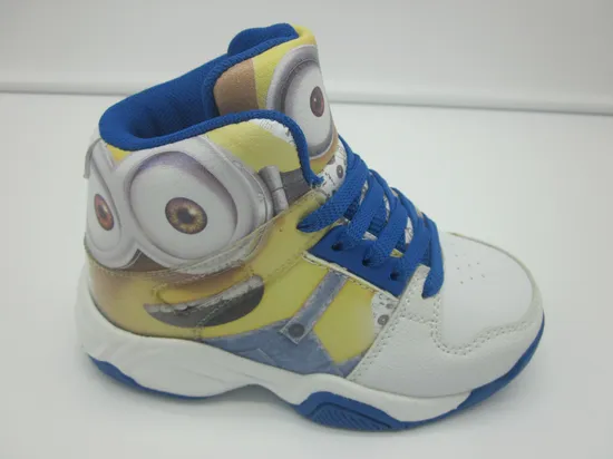 High Top Cute Kids Casual PU Shoes with Minions Carton Printing