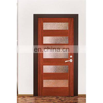 Sapele solid wood interior barn door insert glass This door widely used in barn doors,with frosted glass and smooth paint looks more natural. other most popular wood options include Cherry, Knotty Alder, Walnut, Ash, Oak or any other wood species of your choice. And differnt door color could be provided, doors size could be customize too. Details images Product description Brand/Item#Sapele solid wood interior barn door insert glass Material1.100%solid wood Sapele solid core 2.100% solid wood Sapele wood veneer finished +MDF +Solid wood coreFinishingsmooth paintingColorBrown color,different F color are avaliable,free customized.DesignFree customized; OEM acceptable.ArchitraveTwo face both interior and exterior with architrave.Glass Art glass /clear glass /frosted glass etc.Openning inward or outward Lock positionLeft / rightOur wood door features10 years at least wood door production experience; 100% handmaking craft; Deep carved design; Wood pre-treated; Mositure proof & Waterproof; non-cracking & weather resistance; Solidity & Security Our wood door structure:1.Solid wood core. 2.With solid core, heavier, stronger, last longer and soundproof,finished with MDF panel and 1mm natural wood veneer. Our door with hign quality stainless steel material locks and hinges. Wood material Wood species and color for reference. product processing Craftworkship Carving Pre-primed and painting Painting-dry