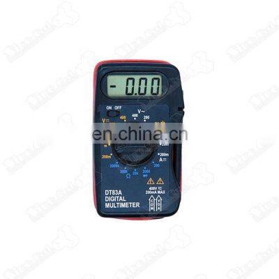 Product DescriptionGood quality digital multimeter DT83A with Battery Test CharacteristicExtra thin multimeter, small and niceWith test lead inside meter, easy to takeWith battery capacity test functionTechnology featuresDCV: 200m-2000m-20-200-400V ±0.5%ACV: 200-400V ±1.0%DCA: 2000u-20m-200mA ±1.8%Resistance: 200-2000-20K-200K-2000KΩ ±1.0% DescriptionLCD size: 35x14mmMAX display: 1999Low battery indication: yesOverload protection: yesDiode test: yesBattery test: 9VPower supply: one 12V 23A batteryProduct size: 102x60x24mmProduct weight: about 60gStandard accessories: meter(with battery), manualPacking: single blister Packing quantity: 100PCS/CTNCarton size: 57.5x30x24.5CMG.W./N.W.:10/9KGDetails ImagesSpecificationBrand NameSinocoolModel NumberDT83ADCV200m-2000m-20-200-400VACV200-400VDCA2000u-20m-200mAResistance200-2000-20K-200K-2000KΩRelated productPacking & DeliveryCompany ProfileSinoCool Refrigeration & Electronics Co.Ltd. is a large modern enterprise specializing in refrigeration accessories, we deal with the spare parts from 2007. Now we have 3000 kinds spare parts for Air conditioner, Refrigerator, Washing machine, Oven, Cold room; We have relied on high technology for a long time and have invested huge amounts of money in compressors, capacitors, relays and other refrigeration accessories. Stable quality, superior logistics and caring service are our advantages. Customized products and OEM service are all available.Exhibition