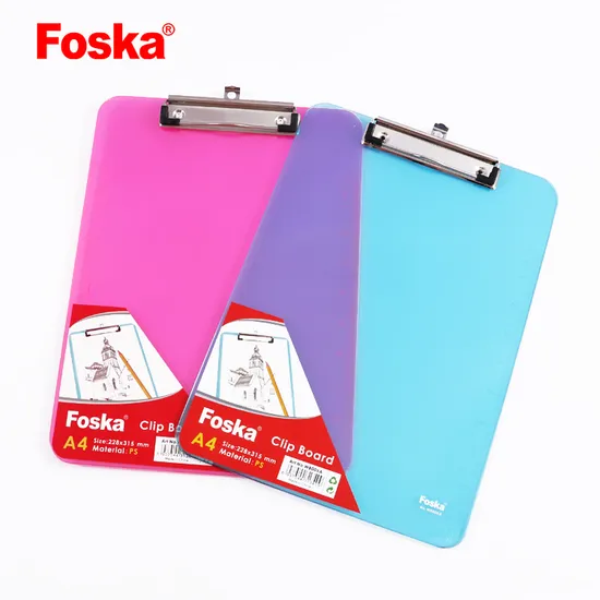 The sturdy plastic will keep your handwriting neat and legible while the secure metal clip will keep your papers together and organized.FOSKA clipboard with rulers on both sidesSimple and practical products with high cost performancePlastic Writing Clipboard File FolderThe plastic clipboard helps you organize your papers better, whether it's for work or study. Product details: Material: 2mm Thickness PS Material Feature:Waterproof Ruler:Inch Scale Ruler+Centimeter Scale Ruler Clip: Low-profile clip with pen loopCorners: Rounded corner designHanging: Hang hole side at the top of the clipTwo SizesA4 & FC Size,perfect for any document.