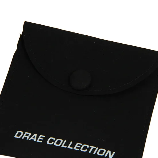 Microfiber Black Jewelry Snap Pouch Adorned with White Logo