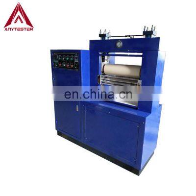 Product DescriptionHY0131 Laboratory Calender is specially designed for calendaring test in laboratory. It is a finishing machine for various textiles after printing and dyeing, such as pure cotton, chemical fiber, hemp, wool spinning and blending fabrics. It can make fabric luster and smooth.Details & FeaturesModelHY0131 Roller2pcs width:400mm, dia.:150mmMax. working width500mmWorking speed0~6m/minMax. temperature180℃Max. pressure100T, hydraulic typeHeating methodElectric heating, 3kwPower supply380V, 50HzMax. Power4kwDimensions1430×600×1650mmWeight1200kgSpecification1.It consists of roller driving system, hydraulic loading system, roller cooling device, etc.2.Upper roller is gravity nylon roller and lower roller is chrome plated heating roller treated with mirror grinding.3.It’s equipped with emergency stop button on the control panel. The motor has reverse function, once the machine stop after pressing safety button, the motor will turn back.4.The roller running speed and work pressure between the rollers are all adjustable.Our CompanyHistorySince 1982 with more than 20 years’ experienceWarrantyTwo Year Warranty for whole productTrainingVideo and user manual for trainingOnsite serviceInstallation and training service is availableTesting serviceFree sample testing before order is availableLead time15 working days lead time for most productPacking & DeliveryPackagingPackaging Details1. The equipment is covered with film is protect it from water vapour during the trip. 2. The box is filled with foam to protect the equipment from impact. 3. Exported wooden box made from plywood, don't need fumigated. PaymentPayment TermT/TEXW30% T/T in advance, paid the balance before shipmentFOBCFR(C&F)30% T/T in advance, paid the balance against copy of B/LCIFL/CL/C amount above 50,000 usd, we can accept L/C at sightWest UnionAmount lower than 5000usdWest UnionDelivery Time7~10days after receiving payment for one containerContacting Us