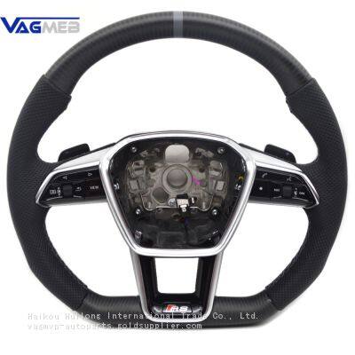 For Audi A6 C8 Punched Leather Gray Stitching Gray Lable Multifunction Steering Wheel With Key Button Assembly