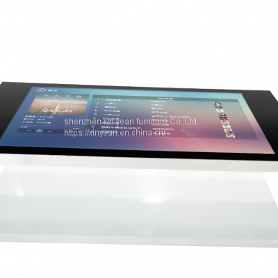 Features and functions of the smart coffee table: 1. Services for various industries: the smart coffee table can serve various industries, including KTV ordering songs, catering ordering systems, self-service business handling of communication providers and financial institutions, real estate/car pre-sales/ Wedding photography display, information introduction of tourist attractions/museums/science and technology museums and other functions. 2. Interactive entertainment function: the smart coffee table can perform multi-touch interactive games, satisfying the need for multiple people to operate and play games together, and increasing entertainment and interactivity. Through the advanced optical interactive sensing imaging technology, the touch is sensitive and precise, compatible with different multi-touch standards, and can identify more than a hundred touch points at the same time, and the multi-person operation will not be affected by each other. 3. Support a variety of built-in software: the smart coffee table has met the needs of multimedia material display, product introduction and marketing, introduction of relevant knowledge, and electronic teaching through built-in functions such as electronic whiteboard, electronic reading, three-dimensional map, multimedia browsing, and enhanced PPT display. 4. Network connection: The smart coffee table can be connected to digital devices such as mobile phones, tablets, and cameras to realize information interconnection and wireless exchange. It can also browse relevant web pages and obtain The information you want, such as querying nearby information, enjoys convenient services. 5. Expanded functions: the smart coffee table can be redeveloped according to the user's needs for other applications, and the design port is open。