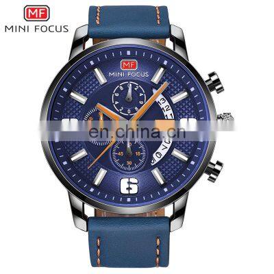 MINI FOCUS MF0025G Men Quartz watches Luxury Brand Army Military Sports Analog Watches Casual LeatheBand Product Description1. Specifications: ModelMINI FOCUS MF0025G Wrist WatchMeterial / SizeMovement:Japan Quartz Movt.Case Material:AlloyBand Material:Leather Diameter:48mmBand Width:22mmBand Length:25cmCase Thickness:13mmWeight: 70gPackage 1pcs/opp bag, Original box needs extra costMOQ 1Pcs Packaging & Shipping Company InformationShenzhen South America Watch Co., Ltd is a top professional watch manufacturer in SHENZHEN CHINA.In factory there are 100 watch skilled workers, 20 QC, 2 designers, 10 sales, 2 purchasers,and few administrators. Mainly product is watch,such as quartz watch, automatic watch, men's watch, lady watch made from stainless steel or alloy. the requires depend on you. Our NIBOSI branded is registered in Swiss, US and China. And our own brand NIBOSI watches for wholesale annual. Very good competitive price. Delivered Duty Paid drop shipping service. FAQQ: What's youMOQ? Can I mix styles and colors?A: MOQ is 1pcs, can mix styles and colors, delivery day is within 3 days. Q: What's youpacking?A: Ouusual packing fowatch is OPP bag, we also supply you watch box based on yourequirements. Q: Can we print ouown logo? Is there any extra cost?A: Yes, we can make youlogo and design, usually if the coloof the logo is one coloon the dial face, we can print it free foyou. Focomplex logos, there will be extra cost. Q: Which shipping method usually use?A: Usually ship via express shipping, such as DHL, FEDEX, UPS, TNT etc. We also support E-packet. Q: Do you offedropshipping service?A: Yes we offefree dropshipping service, welcome to cooperate with us.