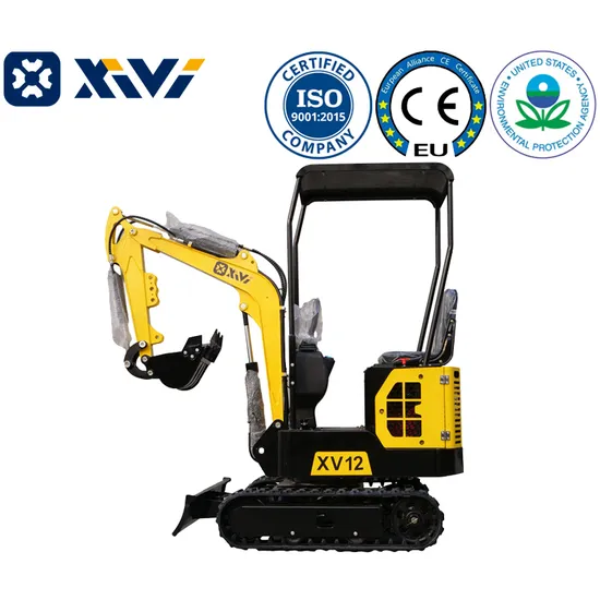 The XV12 Mini Excavator, a compact powerhouse with advanced hydraulic pilot controls and a comfortable operator's seat.