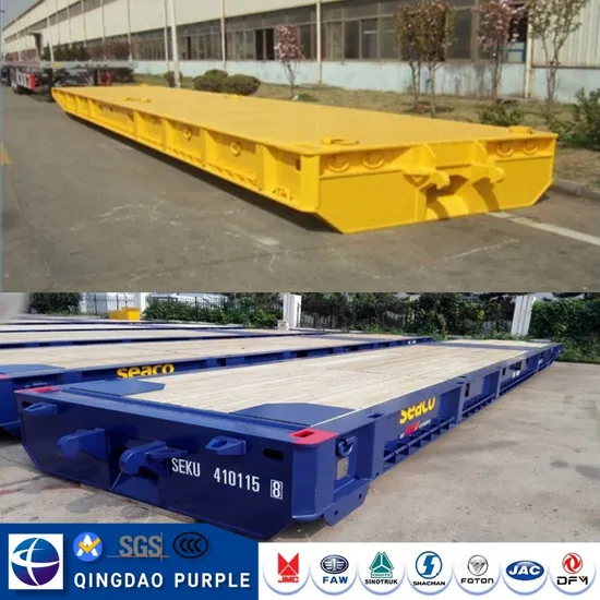 The roller trailer is designed for use in stevedoring and transporting of 1x40ft or 2x20ft ISO cargo containers or loose cargo or big non knocked-down goods on RO-RO vessels or in port.With solid tire and running system. Payload is larger. Wood floor meet Austrailian standrad, Option with steel floor.